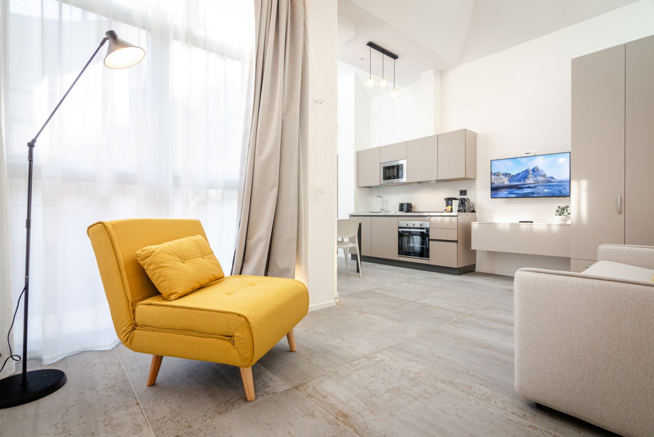 L'appartamento è posto al piano terra, non sarà quindi necessario fare alcuna rampa di scale per raggiungere l'appartamento. L'appartamento sarà consegnato con asciugamani e biancherie di elevato standard alberghiero e di prodotti da bagno monodose, oltre a prodotti di prima necessità in cucina (sale, olio, zucchero, the e tisane, caffè).
