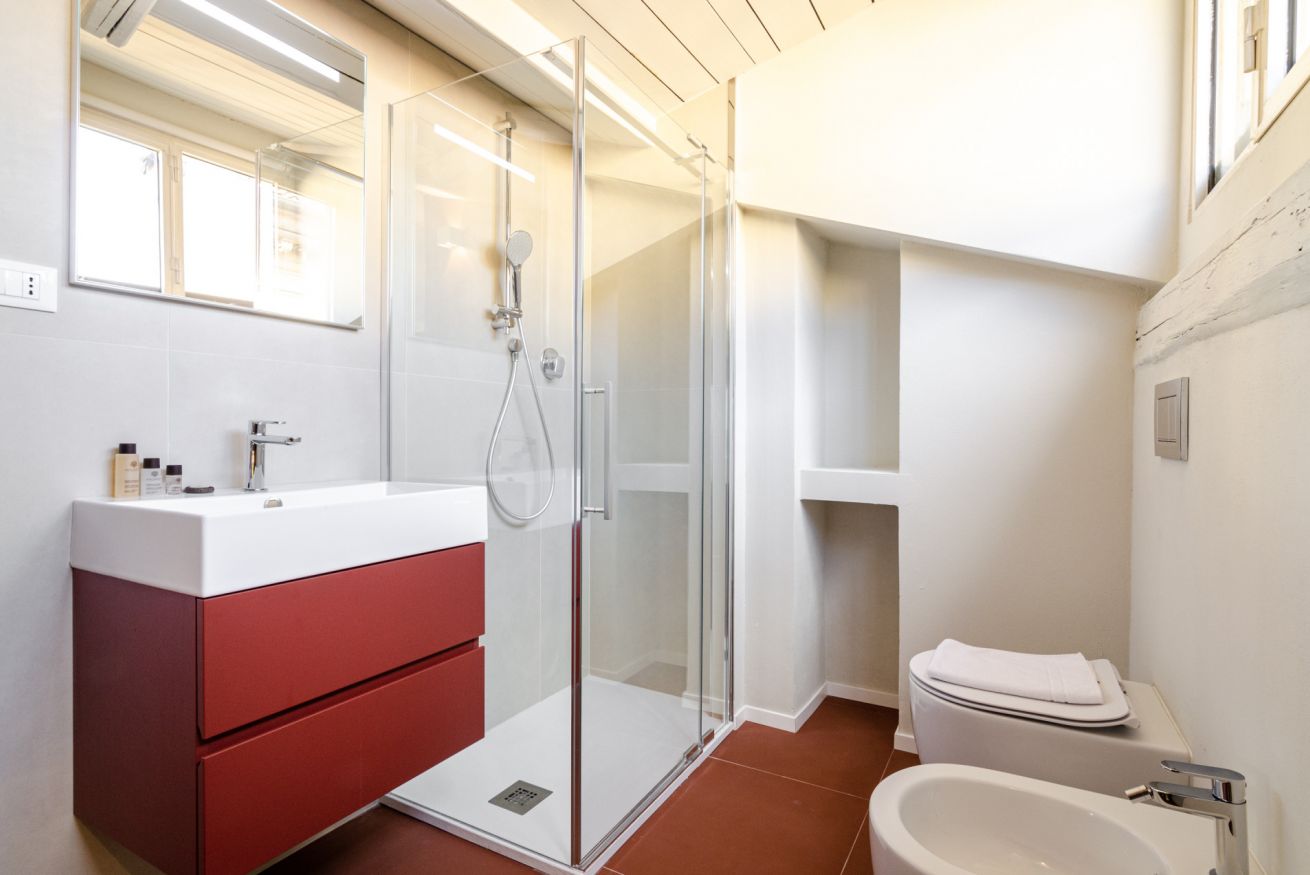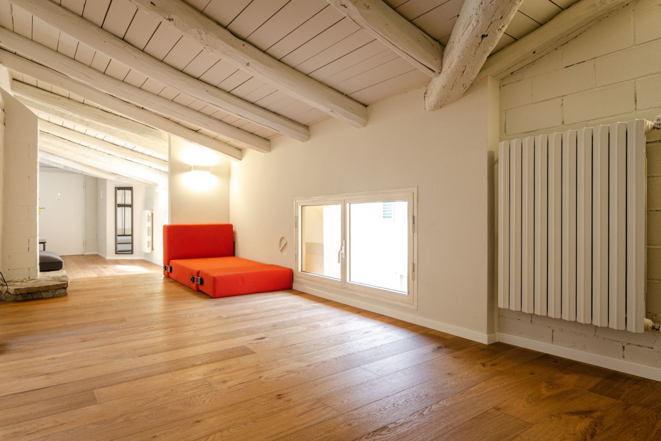 Spacious and comfortable attic apartment located in the historic centre of Bologna, allowing you to walk to the city's main attractions. It consists of a large entrance hallway, a sofa bed with smart TV, a living area with a fully equipped kitchen, a double bedroom, a small private terrace overlooking the characteristic rooftops of the city, a complete bathroom with shower, a washing machine and unlimited wifi.